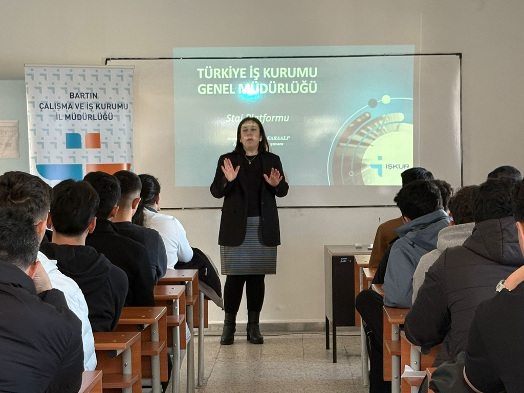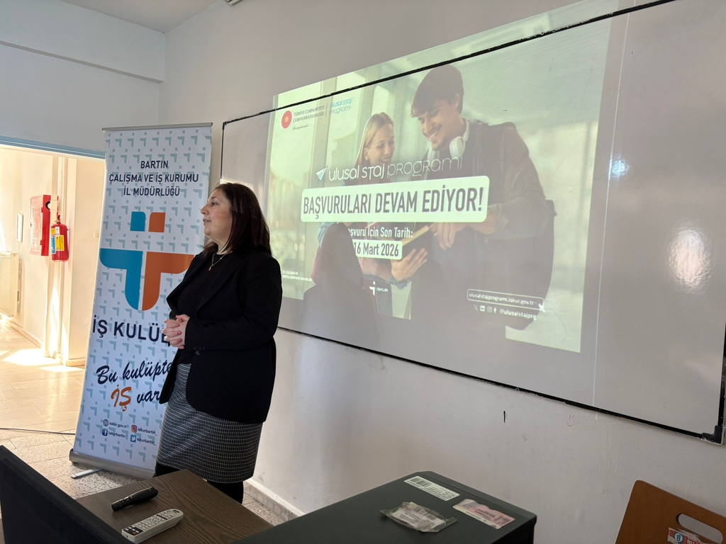 Ulusal Staj Programı 2026 Yılı Başvuruları Hakkında Bilgi Vermek ve Başvuru Aşamalarını Anlatmak Amacıyla Öğrencilerimize Bilgilendirme Toplantısı Yapıldı.